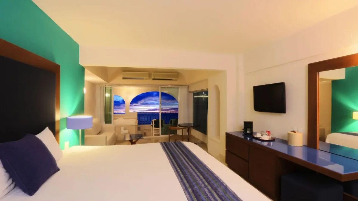 Excelente hotel, muchos lugares donde puedes pasar un rato agradable en pareja, bonitas habitaciones con jacuzzi, y muy bien ubicado en puerto vallarta.