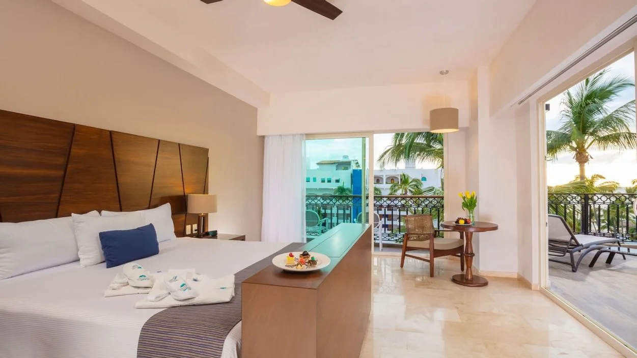 Habitación frente al mar, 1 cama king size, tina de hidromasaje, con balcón, mesa y sillas, A/C, minibar surtido diariamente, pantalla de 42pulgadas con cable, cafetera (previa solicitud), baño con tina, secador de pelo, espejo de tocador, plancha y tabla de planchar, caja de seguridad, estación de carga, teléfono y sofá.